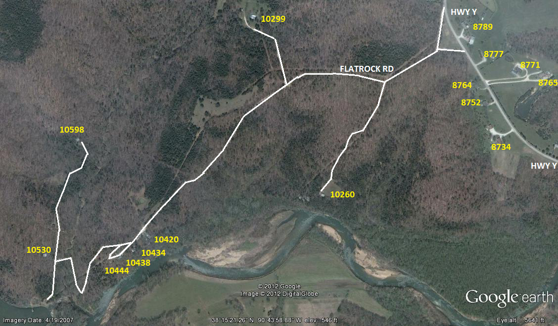 BIG RIVER HEIGHTS RD TO DODSON LN. RIGHT ON DODSON LN TO STATE RD H. LEFT ON