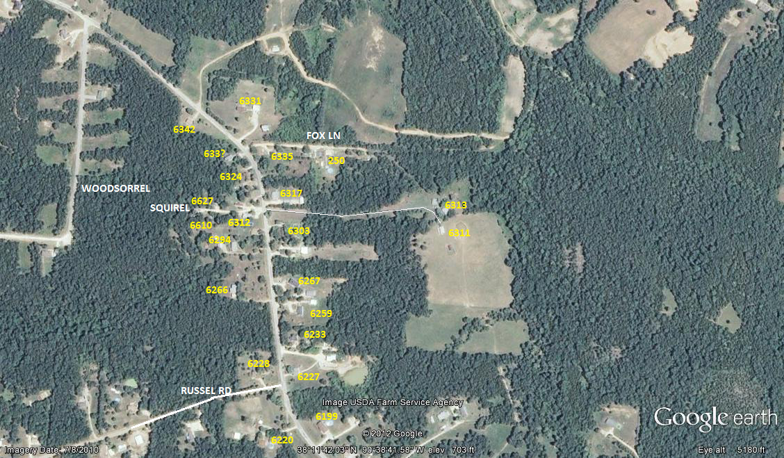 STATE RD H TO PETERMOORE LN. LEFT ON PETERMOORE LN TO STONEHOUSE RD. LEFT ON STONEHOUSE