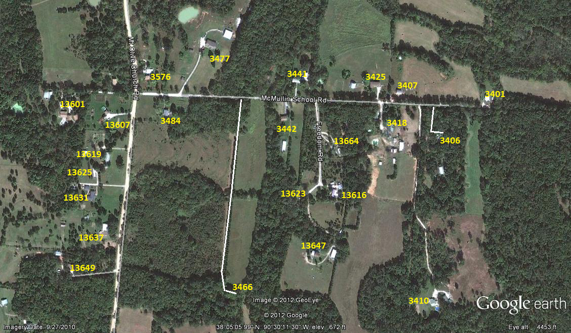 ON STATE RD V TO MOUNT OLIVE RD. LEFT ON MOUNT OLIVE RD TO MCMULLIN SCHOOL RD. LEFT ON MCMULLIN SCHOOL RD