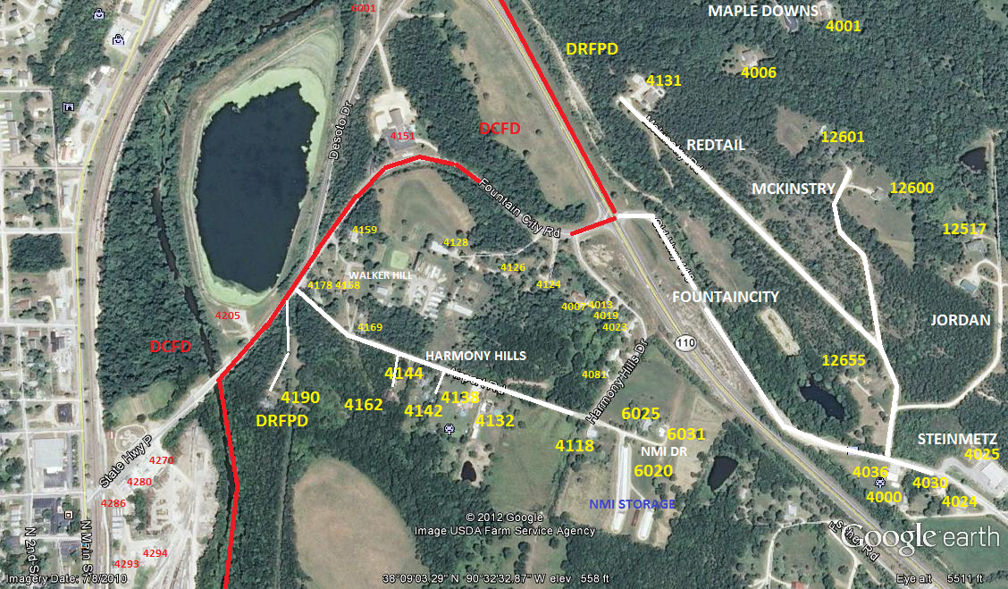FOUNTAIN CITY RD TO HARMONY HILLS RD. RIGHT ON HARMONY HILLS RD