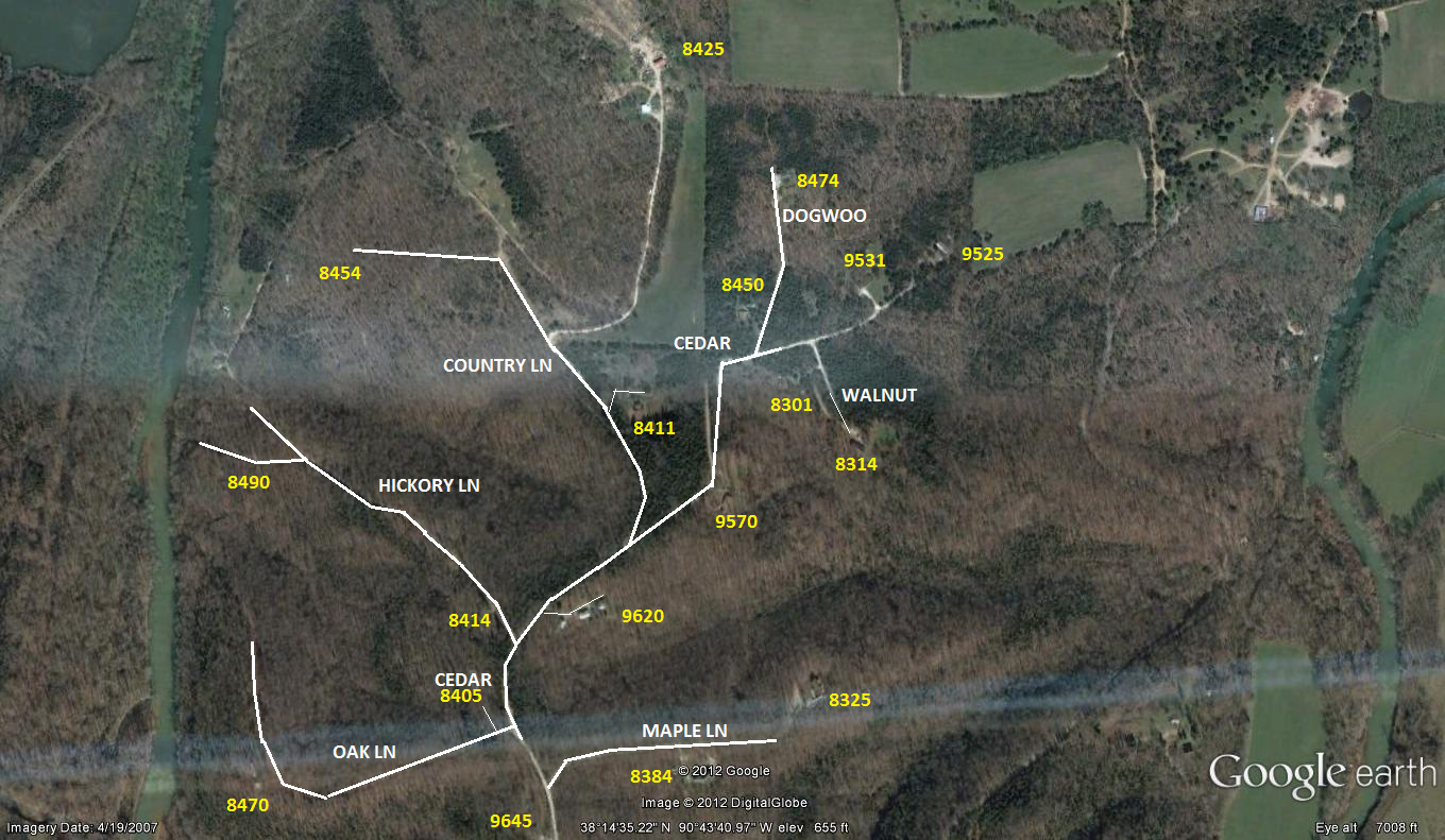 CEDAR DR. RIGHT ON CEDAR DR TO HICKORY LN. LEFT ON HICKORY LN