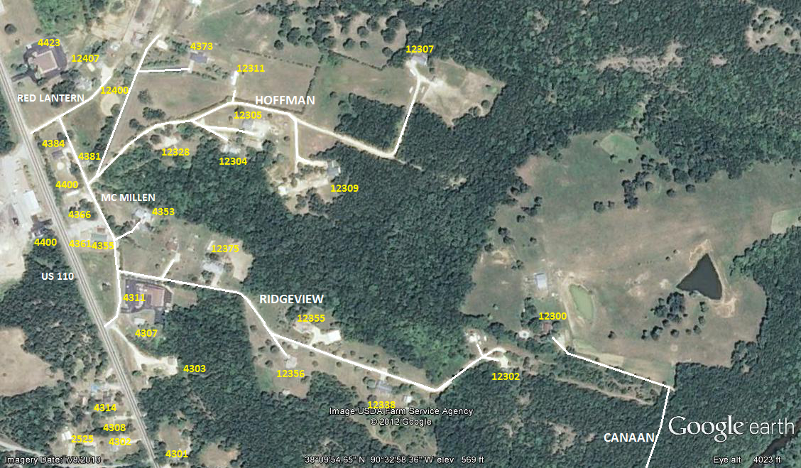 LEFT ON US HWY 67 TO STATE RT 110. LEFT ON STATE RT 110 TO MCMILLEN RD. RIGHT