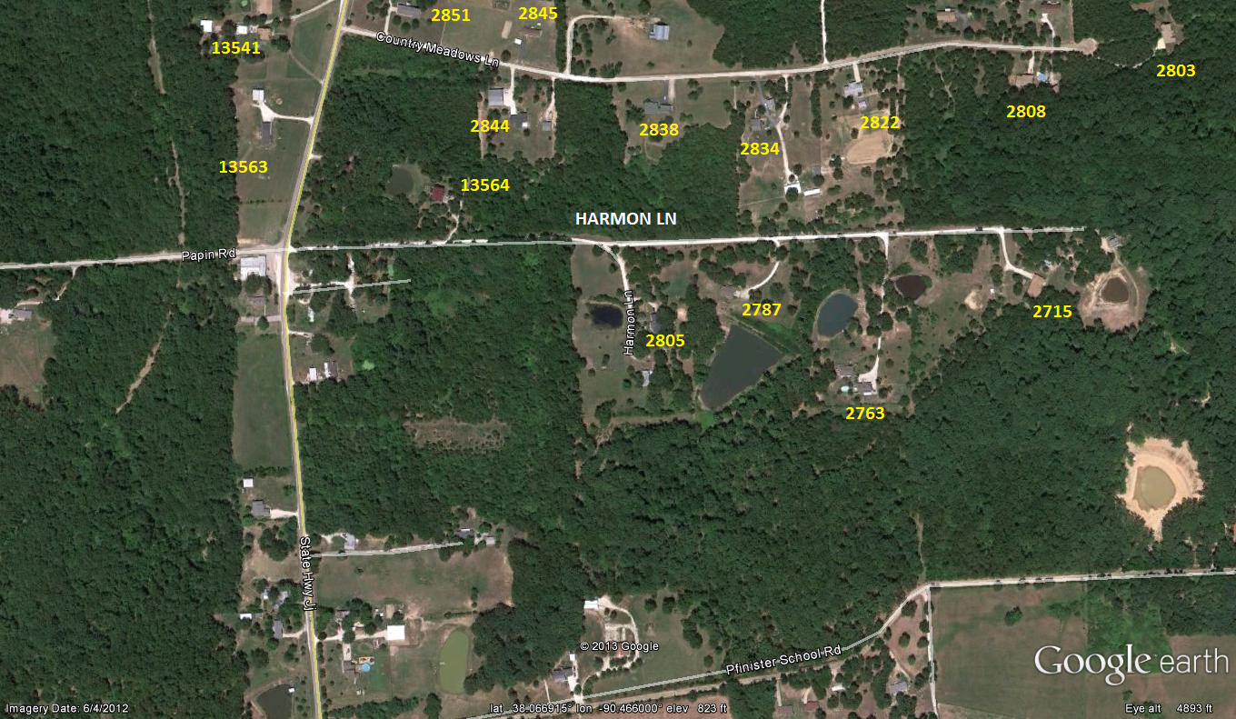 LEFT ON STATE RD JJ TO HARMON LN. LEFT ON HARMON LN