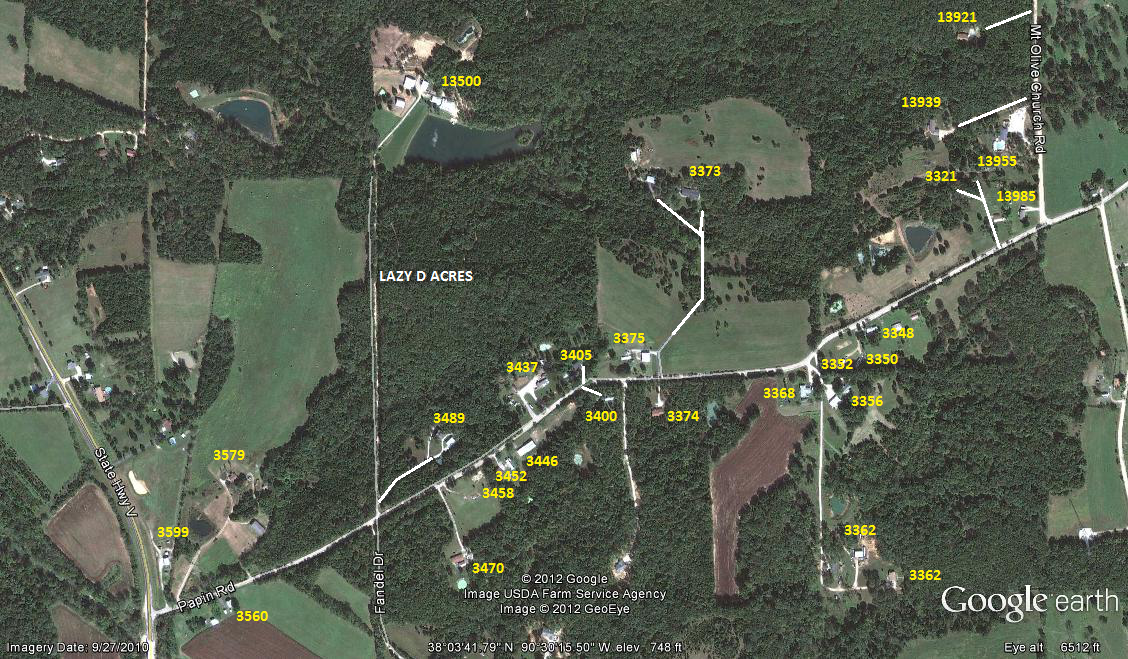 RD V TO PAPIN RD. RIGHT ON PAPIN RD TO LAZY D AVENUE. LEFT ON