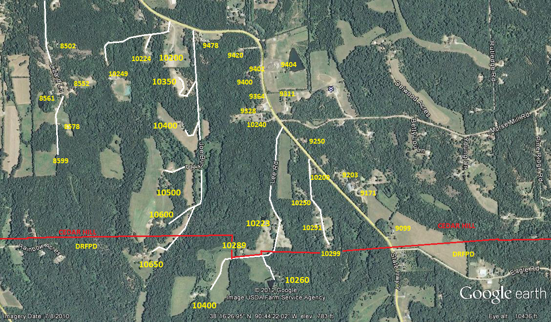 BIG RIVER HEIGHTS RD TO DODSON LN. RIGHT ON DODSON LN TO STATE RD H. LEFT ON