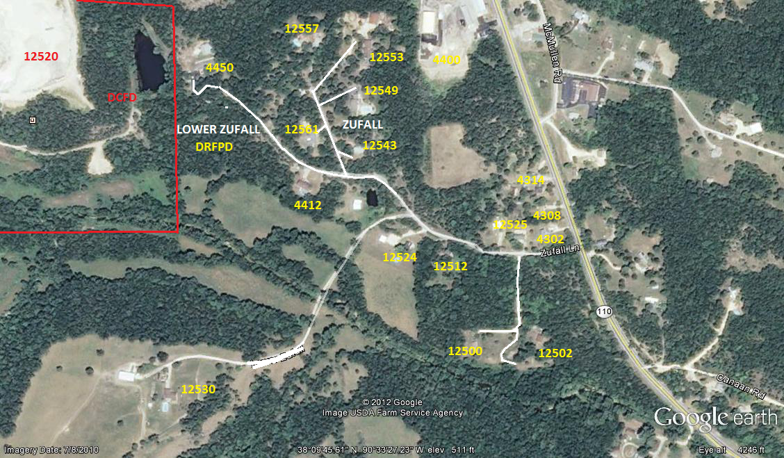 ZUFALL LN TO LOWER ZUFALL LN. LEFT ON LOWER ZUFALL LN