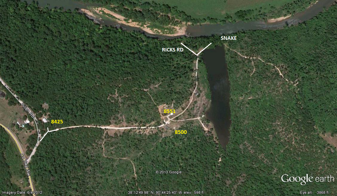 PERKINS RD TO STATE RT 21. LEFT ON STATE RT 21 TO BIG RIVER HEIGHTS RD. LEFT ON