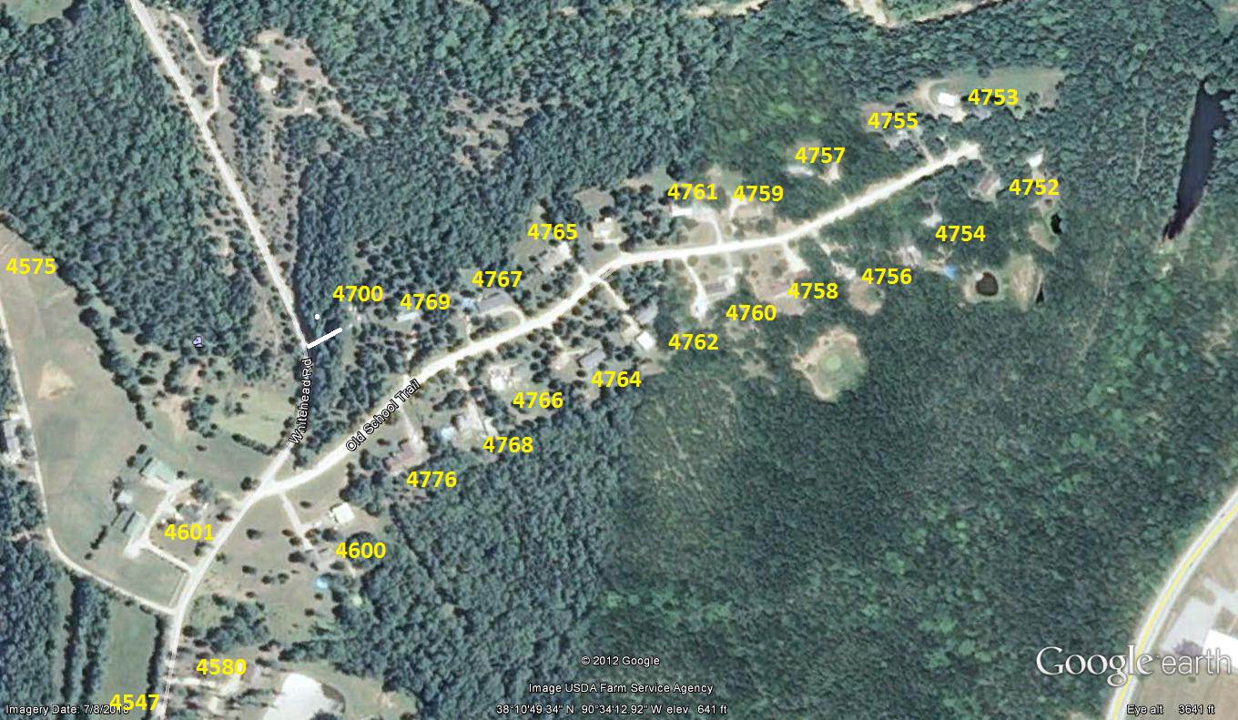 STATION SIX - LEFT ON STATE RD WW TO STATE RD H. LEFT ON STATE RD H TO STATE RT 21. LEFT ON STATE RT 21 TO LIBERTY SCHOOL RD. LEFT ON LIBERTY SCHOOL RD TO WHITEHEAD RD. RIGHT ON WHITEHEAD RD TO OLD SCHOOL TRL. RIGHT ON OLD SCHOOL TRL.