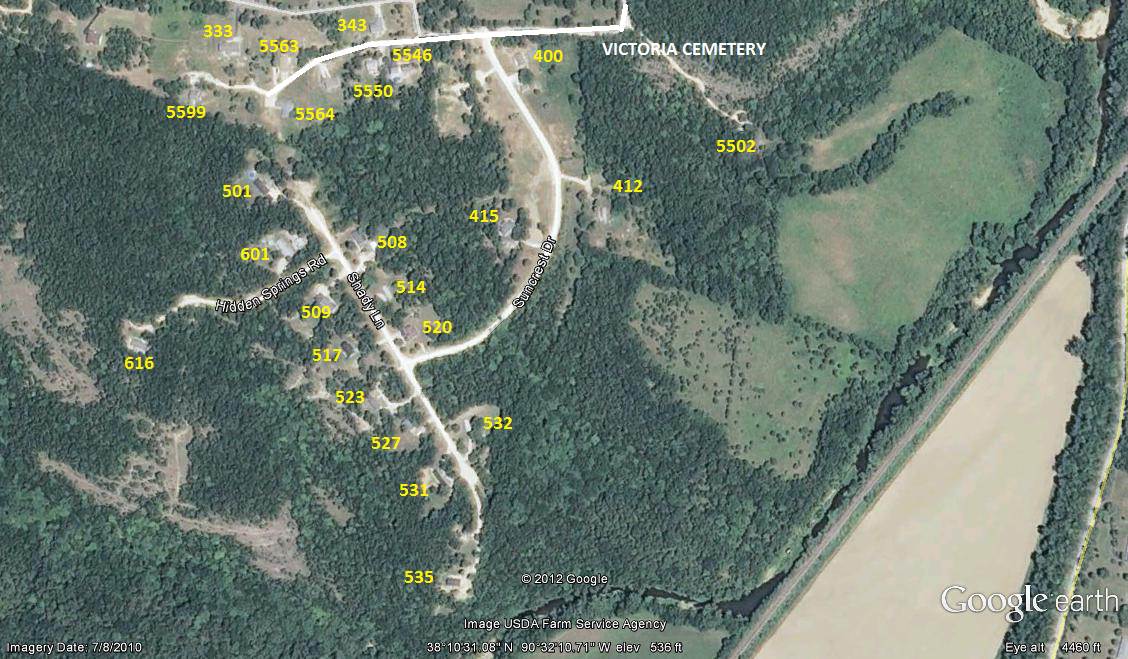 VICTORIA CEMENTERY RD. LEFT ON VICTORIA CEMENTERY RD TO SUNCREST. LEFT ON SUNCREST