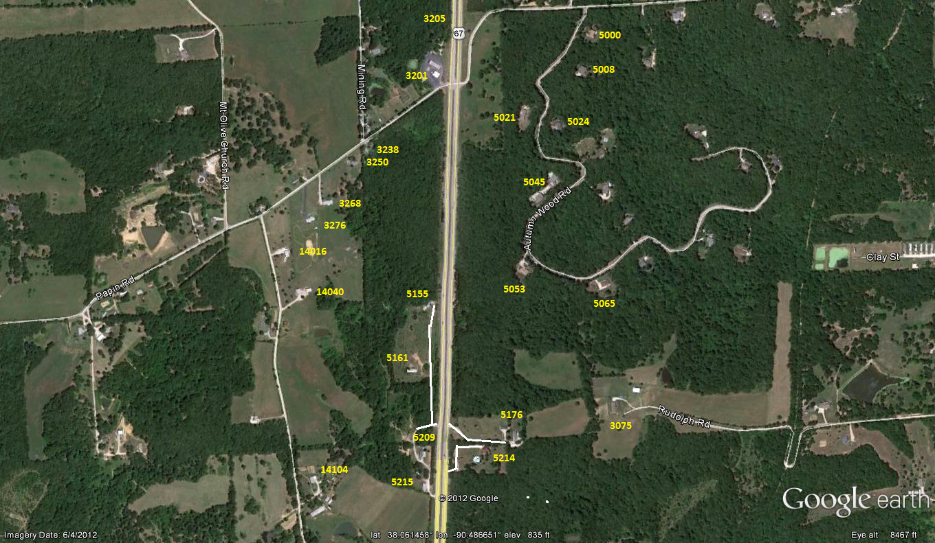 STATE RD V TO US HWY 67. LEFT ON US HWY