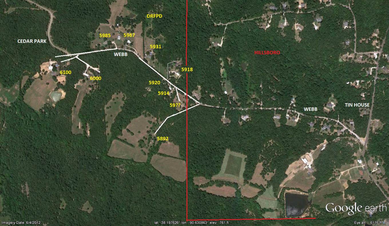 Y TO TINHOUSE RD. RIGHT ON TINHOUSE RD TO WEBB RD. LEFT ON WEBB RD